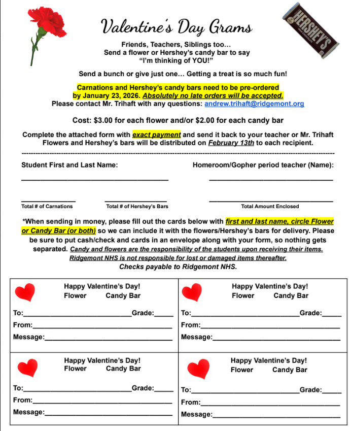 Valentine's Grams- forms coming home today